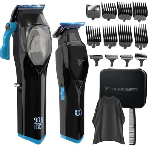 View full detailsHUMMINGBIRD™ Pro Series Hair Clippers and Trimmer Set – 9000 RPM Magnetic Motor, DLC Blade, Zero-Gapped T-Blade Trimmer, Cordless USB-C Rechargeable, Super Torque, Carry Case, Professional Barber Kit