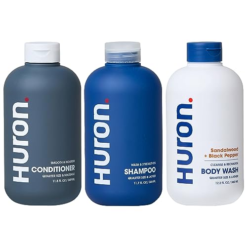 View full detailsHuron Shower Kit - Shampoo, Conditioner, & Body Wash For Men - Sandalwood + Black Pepper Scent - Hydrating & Nourishing Men's Shampoo & Conditioner