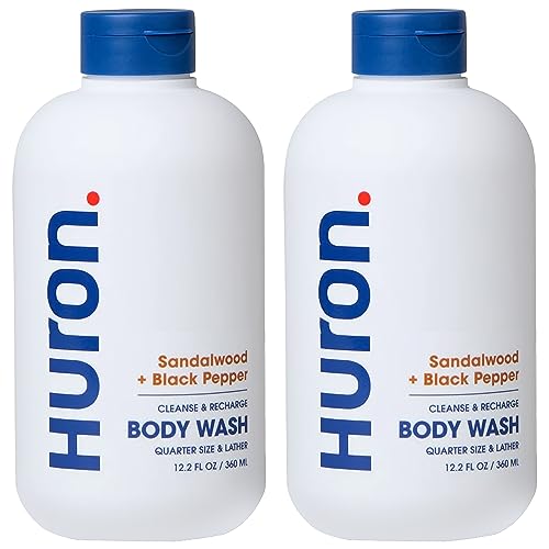 View full detailsHuron Men’s Moisturizing Body Wash - Clean & Woody Scent of Sandalwood, Black Pepper, Cedarwood, & Amber - Made With Coconut Oil, Vitamin E & Witch Hazel - Vegan, Cruelty-Free - 12.2 fl oz (2 Pack)