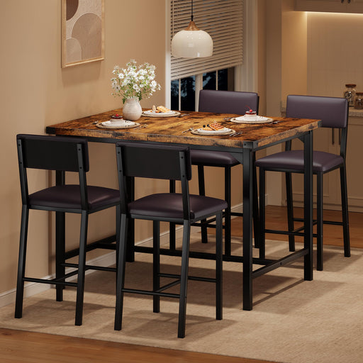 Brand: IDEALHOUSEColor: Retro BrownFeatures: Metal Corner Guards: This 4-person dining set includes a bar-height table and 4 upholstered bar stool...