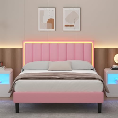 View full detailsFull Size Bed Frame, Pink Full Bed Frame with Headboard, Bed Frame Full Size with LED Lights, Upholstered Headboard, No Box Spring Needed, Noise-Free, Easy Assembly, Pink