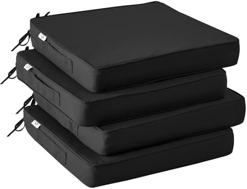 View full detailsOutdoor Chair Cushions Set of 4,Waterproof Outdoor Seat Cushions for Patio Furniture,Patio Chair Cushion with Handle and Ties, Square Out Door Chair Pads,19" x 19" x 3", Black