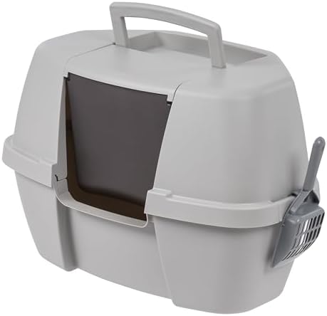 View full detailsIRIS USA Cat Litter Box, Enclosed Litter Box with Front Door Flap and Scoop, Covered Kitty Litter Box with Handle and Buckles for Portability and Privacy, Gray