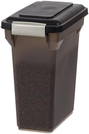 View full detailsIRIS USA Dog Food Storage Container, 10 Pound, Airtight Seal and Buckle, Easy 1 Hand Opening Hinged Lid, Versatile, Space Saving Compact Size, Pearl/Black