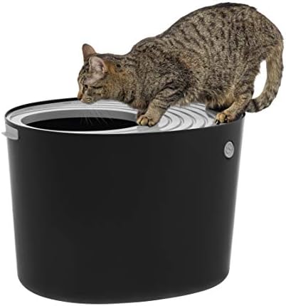 View full detailsIRIS USA Cat Litter Box, Top Entry Litter Box with Scoop, Stylish Round Cat Litter Box Enclosure, Kitty Litter Box, Black/Gray