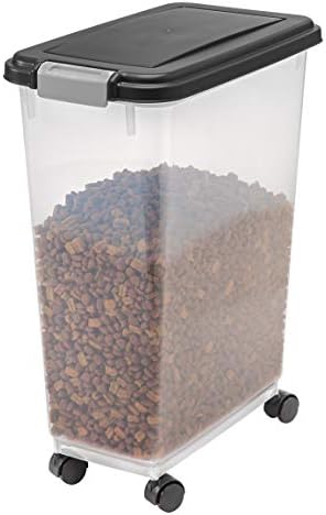 View full detailsIRIS USA Airtight Dog Food Storage Container, Up to 30 lbs, Attachable Wheels, for Dog Cat Bird and other Pet Food Storage Bin, Keep Fresh, Easy Mobility, BPA Free, Black