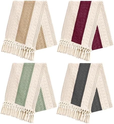 View full details4 Pieces Boho Table Runner with Tassels Rustic Farmhouse Table Runner Macrame Burlap Table Decoration for Bohemian Kitchen Dining Table Living Room Bedroom Farmhouse Home Decor(12x72 Inches)