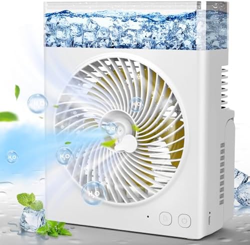 View full detailsPortable Misting Fan, 8000mAh 8-Inch Rechargeable Water Cooling Mist Fan with 600mL Water Tank, Quiet USB Battery Powered, Perfect for Camping Home Outside Office Travel