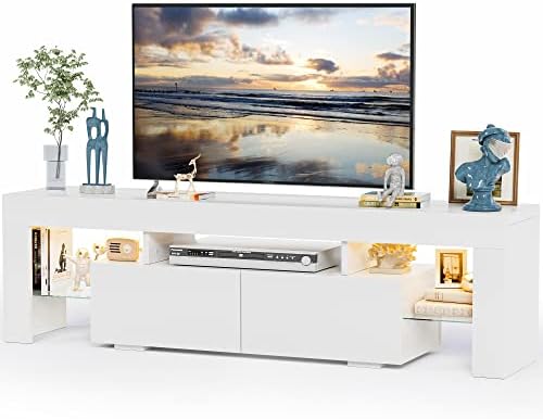 View full detailsJUMMICO TV Stand with LED Lights, Modern Entertainment Center Media and Open Shelf Console Table Storage Desk with 1 Drawer and Remote Control 20 Color LED Lights up to 70 Inch TV (White)