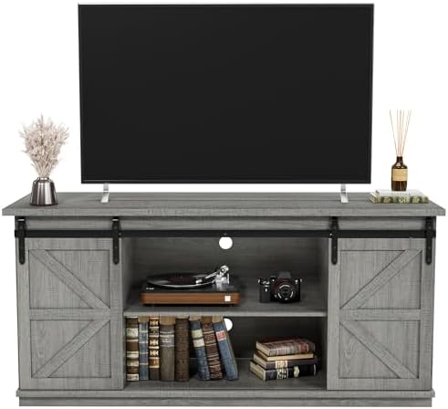 View full detailsJUMMICO TV Stand, 65 Inch TV Farmhouse Entertainment Center with Double Barn Doors and Storage Cabinets, Console TV Table Media for Living Room, Bedroom (Grey)