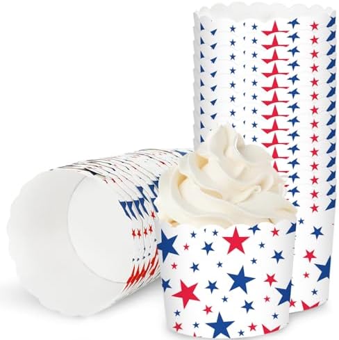 View full details100Pcs Stars Baking Cups Red White Blue Patriotic Cupcake Wrappers Paper 4th of July Scalloped Edge Cupcake Muffin Cases for Independence Memorial Day Party Dessert Decoration