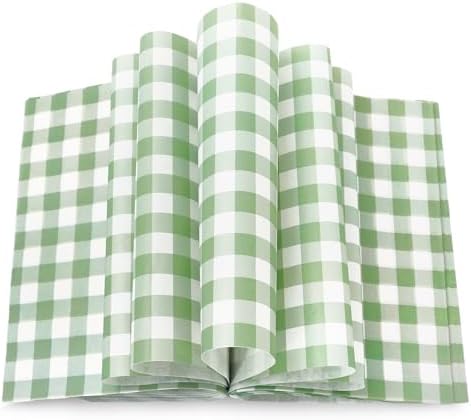 View full details150Pcs Sage Green Plaid Wax Paper Gingham Checkered Deli Paper Tissue Sandwich Wrap Waterproof Oil-Proof Picnic Liner for Party Kitchen Supplies