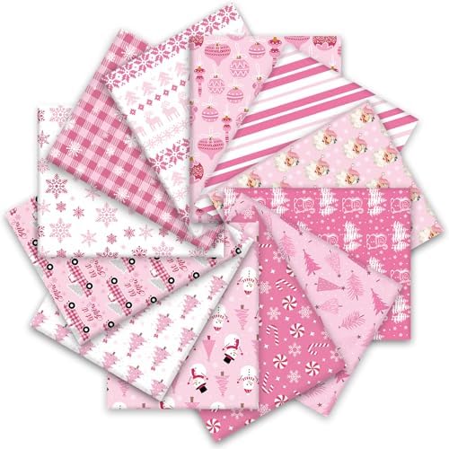 View full details12 Pcs Pink Snowflake Cotton Fabric Bundles 18 x 22 Inch Xmas Tree Santa Fat Quarters Pink White Sewing Fabrics for Christmas Winter DIY Craft Party Decor