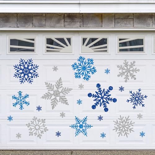 View full details24Pcs Winter Christmas Garage Decoration Magnet Stickers Blue Silver Snowflake Refrigerator Decals for Xmas Home Party Room Garage Door Car