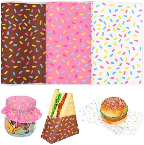 View full details240 Sheet Donut Sprinkles Wax Paper Brown Pink White Sprinkles Design Food Wrapping Tissue Paper Deli Paper Basket Liners for Home Kitchen Restaurant Baking