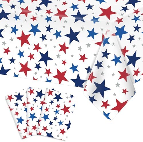 View full details3Pcs American Flag Plastic Tablecloth Patriotic Red White Blue Star Disposable Table Cover 4th of July Rectangle Table Cloth for Independence Memorial Day Party Decor, 54 x 108 in