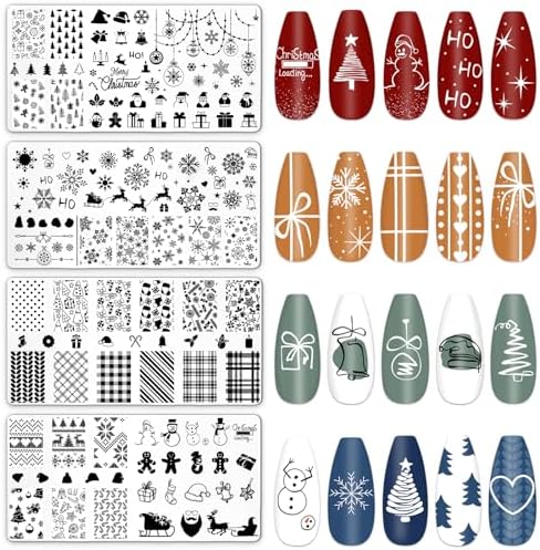View full details4Pcs Christmas Nail Plates Stamping Set Xmas Tree Snowflake Snowman Stamp Templates Nail Art Plates for Winter DIY Print Manicure Salon Design Gift