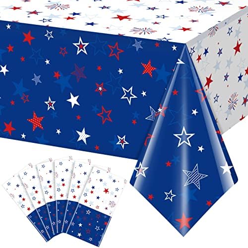 View full details6Pcs Patriotic Tablecloths for 4th of July Decorations,Red White Blue Star Plastic Disposable Table Cover for Fourth of July Memorial Patriotic Day Independence Veterans Day Party Supplies,54x108 Inch