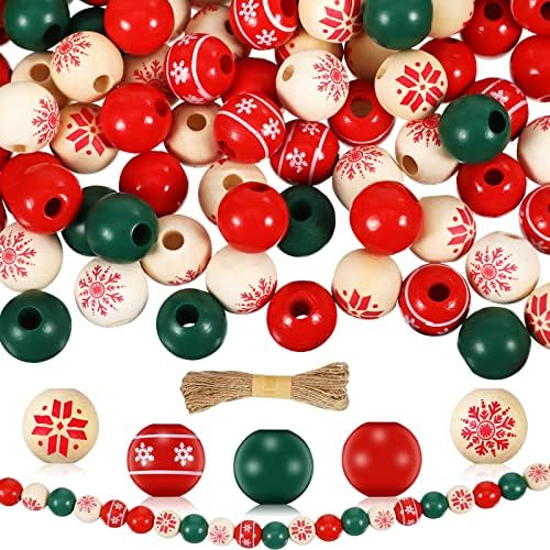 View full detailsJetec 120 Pieces 0.6 Inch Wooden Christmas Beads for Crafts with 65.6 Feet Twine Natural Round Beads with Hole for Xmas Valentine's Saint Patrick's Day Party Decor(Classic Style)