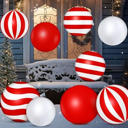 View full detailsJetec 16 Pcs 9 Inch Large Inflatable Christmas Balls Outdoor Decorations PVC Inflatable Christmas Decorated Ball Ornaments Large Outdoor Tree Ornaments for Xmas Porch Lawn Yard Holiday