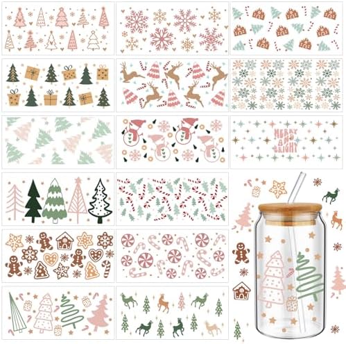 View full detailsJetec 15 Sheets Christmas UV DTF Cup Wrap Pink Transfer Sticker Candy Merry Christmas Glass Stickers for Cups Waterproof Rub on Transfers Snowflake Gingerbread Man Mug Stickers Decals for Crafting DIY