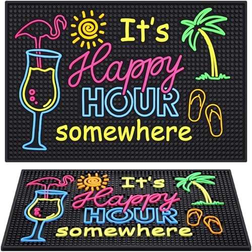 View full detailsRubber Bar Mat for Bartending 18x12 Inch Coffee Bar Mat for Countertop It's Happy Hour Somewhere Non Slip No Spill Tiki Table Pad for Home Bar Cocktail Accessories