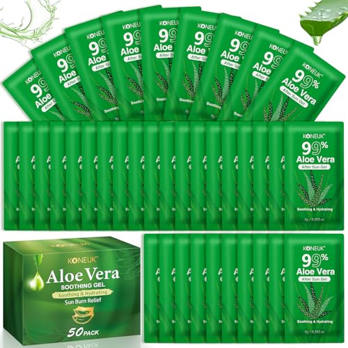View full details50 Pack Aloe Vera Gel for Face, Hair, Body, Skin, Sunburn Relief, 99% Pure Aloe Vera Gel for All Skin Types, Bulk Aloe Gel Travel Size for Soothing After Sun Skin Care Relief