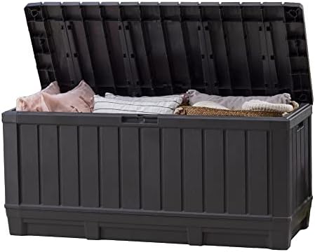 View full detailsKeter Marvel Plus 71 Gallon Resin Deck Box-Organization and Storage for Patio Furniture Outdoor Cushions, Throw Pillows, Garden Tools and Pool Toys, Dark Grey
