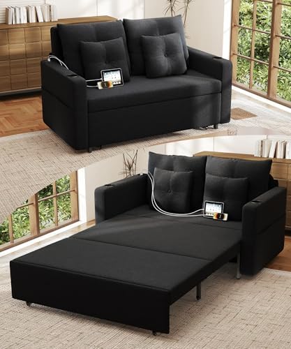 View full details3 in 1 Sofa Bed, 56 Inch Convertible Pull Out Couch, Loveseat Sleeper Sofa with Cup Holders, USB, Couch Bed for Living Room, Bedroom, Apartment, Black