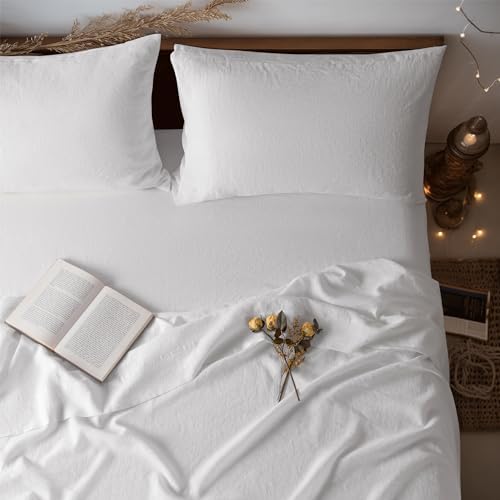 View full detailsLBRO2M 100% Linen Sheet Set Queen Size, Bed Sheets 4 Piece Sets, Solid Color Natural Flax Bed Sheets Soft Breathable Bedding,16" Deep Pocket,All Season (Queen, White)