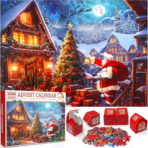 View full detailsAdvent Calendar 2025 Christmas Jigsaw Puzzles, Christmas Cottage Holiday Puzzle for Adult and Kids, 24 Parts 1008 Pieces Advent Calendars Countdown Toys Gifts Decoration with Puzzle Saver
