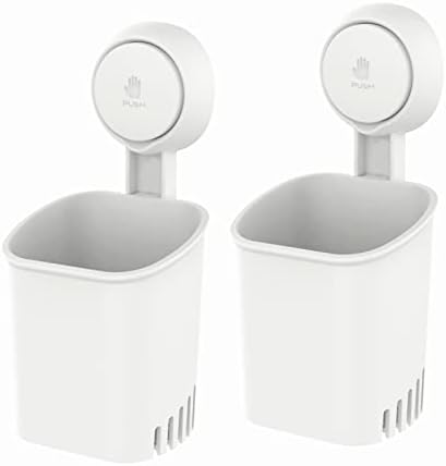 LEVERLOC Powerful Suction Toothbrush Holder, Removable Drill-Free Wall Shower Holder for Toothbrush, Toothpaste, Razor, Self-draining Suction Cup in Shower, Kitchen Tableware Organizer, White, 2 Pack