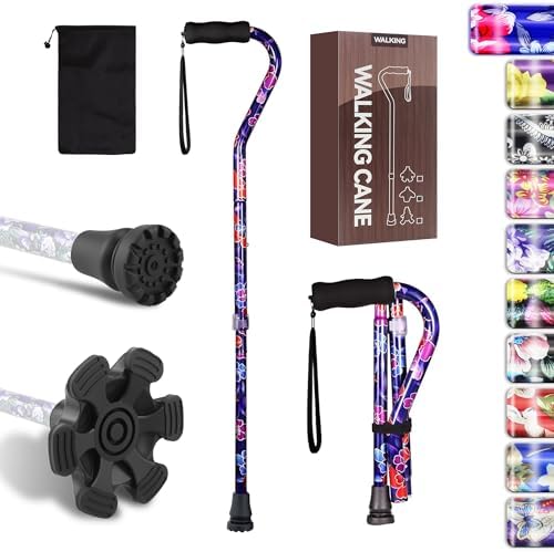 View full detailsLIXIANG Folding Walking Cane, 5-Level Height Adjustable Walking Stick for Men & Women with Comfortable Plastic T-Handle Portable Walking Stick (Purple Flower)