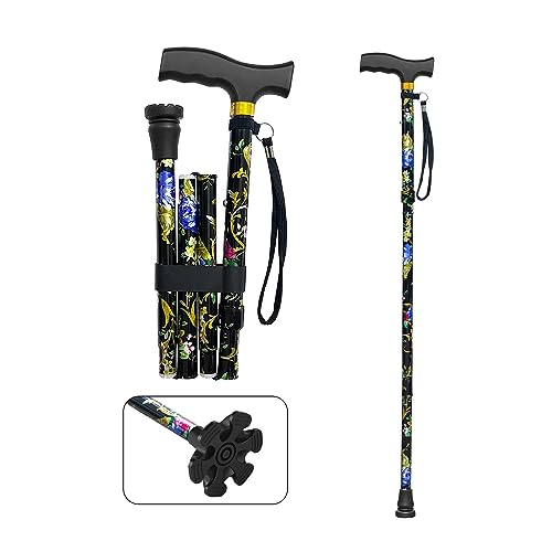 View full detailsLIXIANG Walking Cane with Replacement Base-Folding Cane,Adjustable Colorful Walking Stick for Men & Women with Comfortable T-Handle,Stylish Balancing Mobility Aid,Black Flower