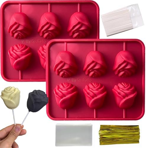 View full detailsRose Flower Lollipop Molds, 2 Pack Rose Silicone Chocolate Candy Molds with 100 Sticks 3D Flowers Cake Pops Mold Sucker Mold for Jelly Soap Hard Candy Mothers Day Cake Cupcake Decorations