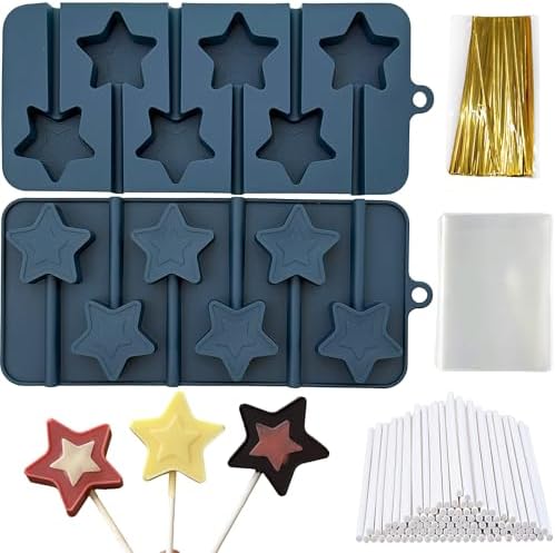 View full detailsStar Lollipop Molds, 2 Pack Star Shape Silicone Chocolate Candy Molds 4th of July Cake Pops Mold Sucker Mold for Jelly Soap Hard Candy Making