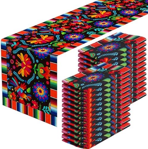 Plastic Package includes: You’ll get 12pcs of plastic Mexican table runners measuring 14 x 84inch. These Mexican party table runners fit mos...