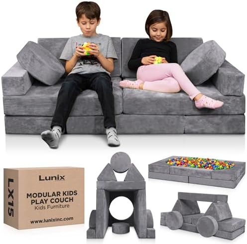 View full detailsLunix LX15 14pcs Modular Kids Play Couch, Child Sectional Sofa, Fortplay Bedroom and Playroom Furniture for Toddlers, Convertible Foam and Floor Cushion for Boys and Girls, Gray