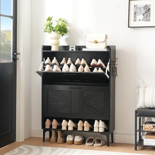 View full detailsShoe Storage Cabinet, Shoe Organizer with 2 Flip Drawers, Hidden Shoe Storage for Entryway, Freestanding Shoe Cabinet Organizer with Open Storages, Black SHHB9401