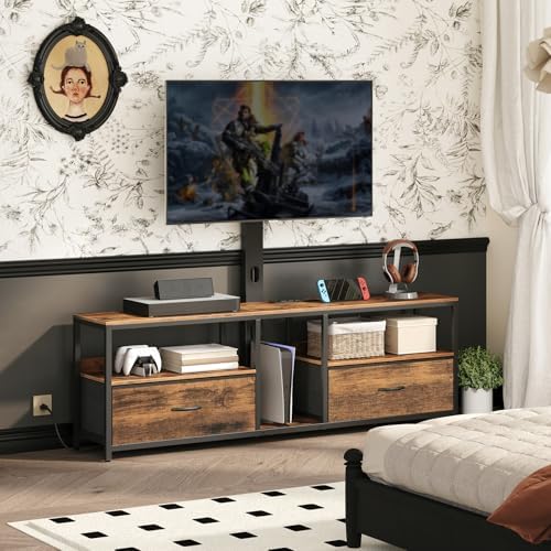 View full detailsTV Stand with Mount for up to 75", Entertainment Center with Switch-Controlled Charging Station, Swivel TV Stand Mount with Fabric Drawers, for Living Room, Rustic Brown TVHR154E01N1