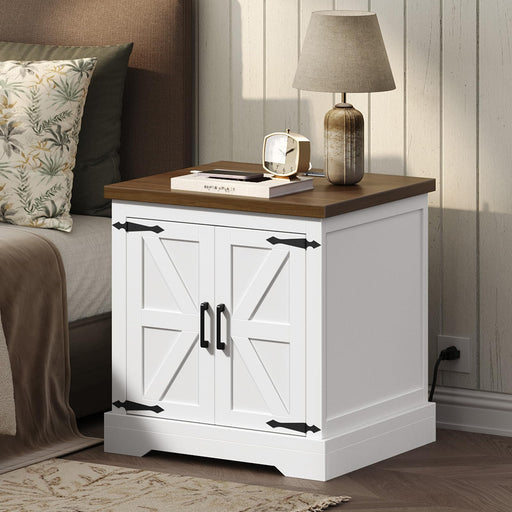 View full detailsMAHANCRIS Farmhouse End Table with Charging Station, 24" Large Sofa Table with Barn Door, Rustic Square White Nightstand with Adjustable Storage Shelf, Bedside Table for Bedroom, Living Room