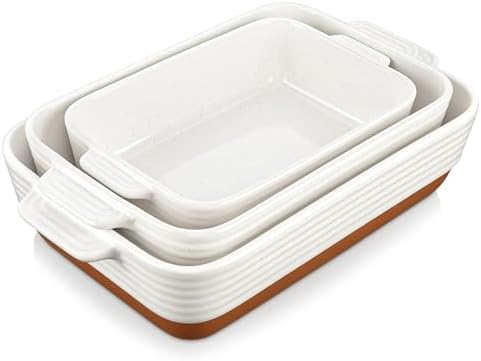 View full detailsMALACASA Casserole Dishes for Oven, Ceramic Baking Dishes Set of 3, Baking Pan Casserole Dish Set, Rectangular Lasagna Pan Deep with Handles for Baking, Khaki White (14.5''/13''/10.5''), Series TARA