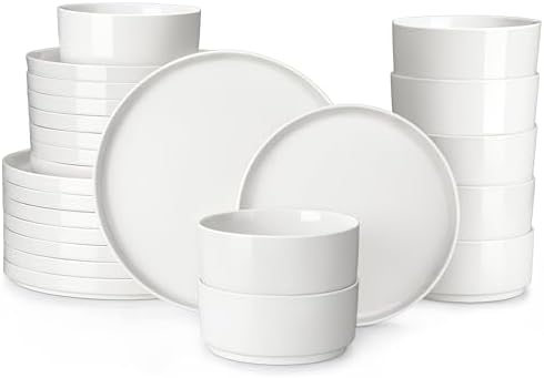 View full detailsMALACASA 24 Pieces Gourmet Porcelain Dinnerware Sets, Premium Plates and Bowls Set, High-Fired Ceramic Dishes Set for 8, Chip & Scratch Resistant, Microwave Dishwasher Safe, White, Series LEXI