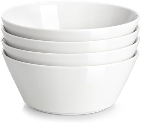 View full detailsMALACASA 35 OZ Soup Bowls, White Porcelain Bowls Set of 4, Deep Bowls for Kitchen, Large Ceramic Bowls for Soup, Cereal, Salad, Ramen and Fruit, Dishwasher & Microwave Safe, Series Regular