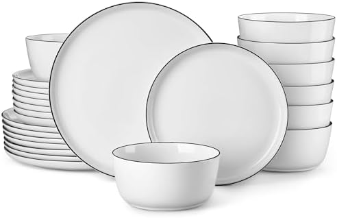 View full detailsMALACASA 24 Pieces Gourmet Porcelain Dinnerware Sets, Premium Plates and Bowls Set, High-Fired Dishes Set for 8, Chip & Scratch Resistant, Microwave Dishwasher Safe, White & Black Rim, Series LEXI