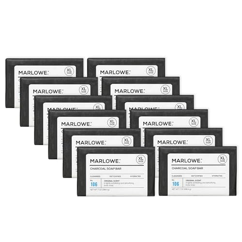 View full detailsMARLOWE. No. 106 Charcoal Soap 7 oz (12 Bars) Body Bar Soap for Men, Cleansing, Purifying & Hydrating with Natural Extracts, Shea Butter, Olive Oil & Green Tea Extracts, Fresh Woodsy Scent