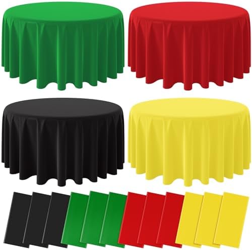 View full detailsMASHAN 12Pcs Red Green Yellow Black Plastic Tablecloths, Disposable Round Table Covers for Kwanzaa Black History Month Juneteenth African American Festival Holiday Party Decorations,84inch