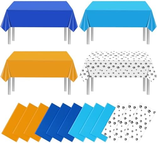 View full detailsMASHAN 12 Pack Paw Print Plastic Tablecloths,Blue Orange Puppy Table Cloth Disposable Rectangle Table Covers for Kids Birthday Party, Dog Puppy Birthday Party Decorations and Supplies, 108 * 54inch