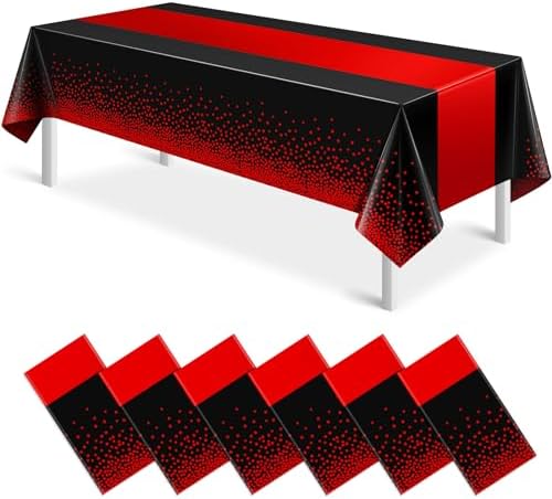 View full detailsMASHAN 6Pcs Black and Red Tablecloth Party Decorations,Plastic Black Table Cloth Printed Red Table Runner Disposable Rectangle Cover for Birthday Weeding Anniversary Graduation Party,54 x108 Inch