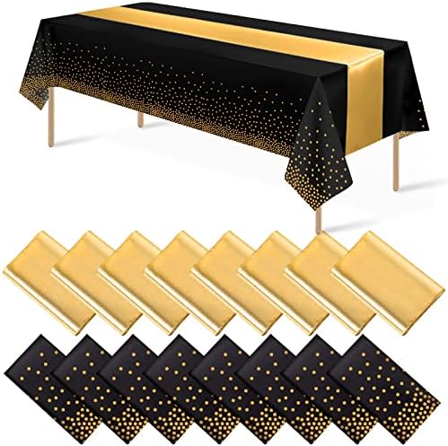 What you will get: the package includes 8 pcs black and gold confetti dot plastic tablecloth and 8 pcs gold satin table runner, specific color a...